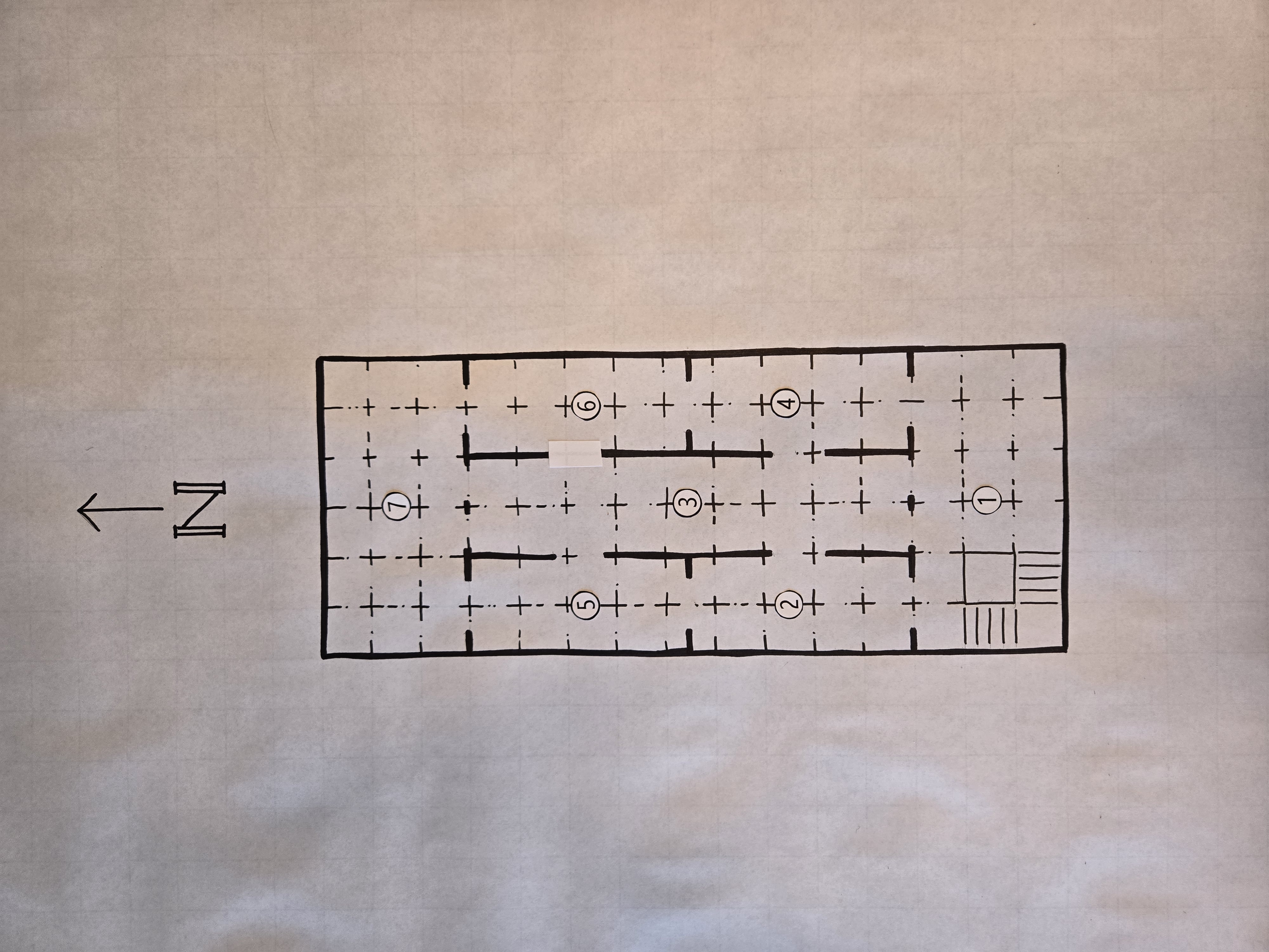 They also saw some rubble in Room 4, and from there they also could see rubble in Room 6, actually more rubble, which the players asked about. They asked if it was manmade rubble or natural (natural), whether there was some damage to the building nearby (no), and if it seemed to be left there on purpose (yes).