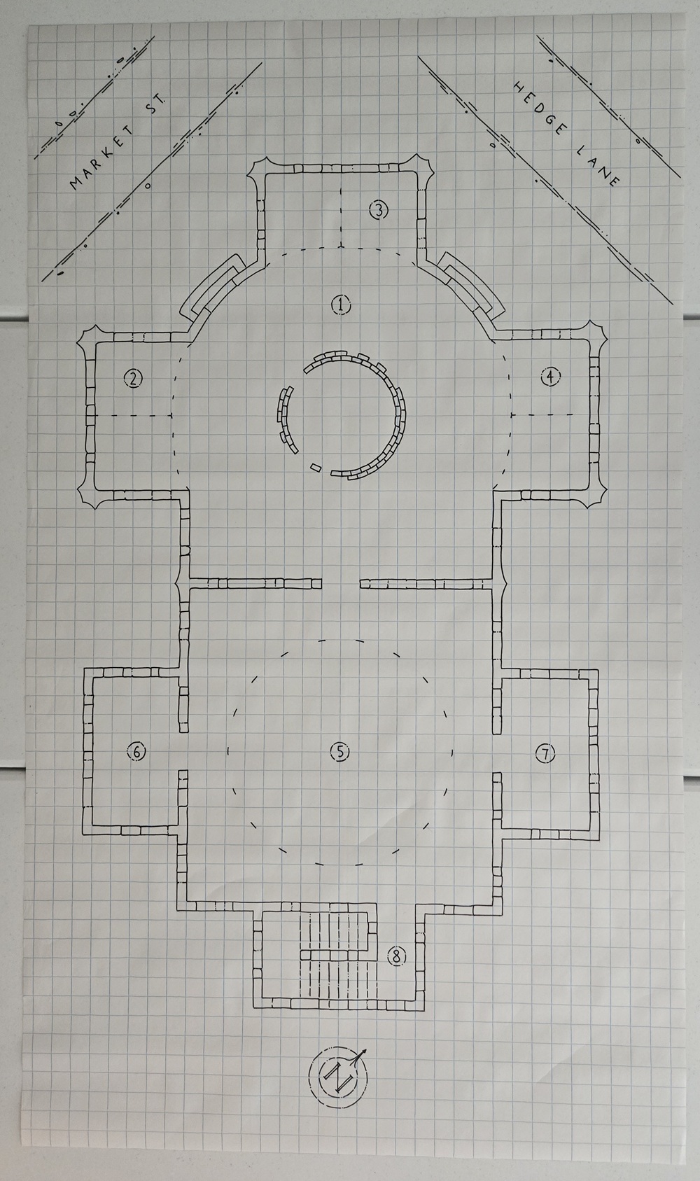 The party finds many ledger stones and iron ledge plates on the floor here, arranged in a rosette around a central round desk covered with books. If they look through the books on the desk, they're Brock family histories and family trees.