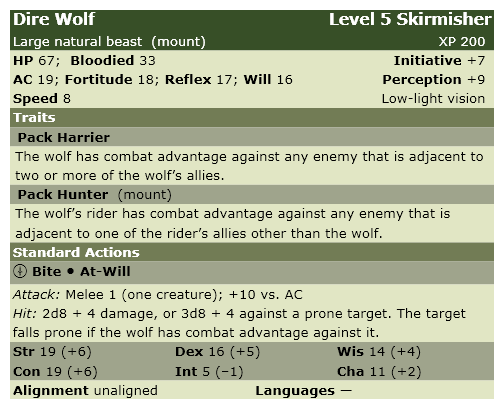 They decided the stone tower had the loot they were looking for. Exploring the tower's basement, they found the first boss of the campaign, the superpowered dire wolf Muninn.