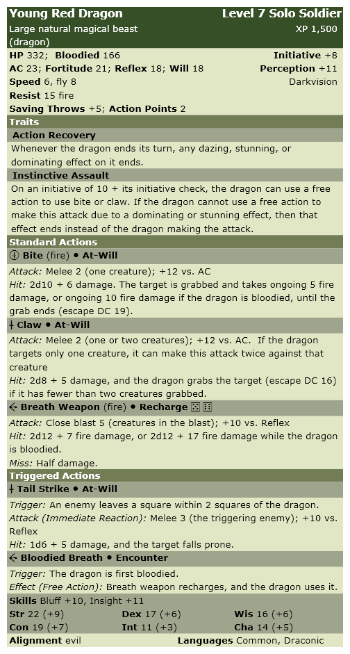 When each character had reached oneness with the spirit world, they were visited by the dragon Vecassitrix - who attacked them. Vecassitrix had these statistics. But even though they were still partially under the effects of the quinine, they still defeated him.