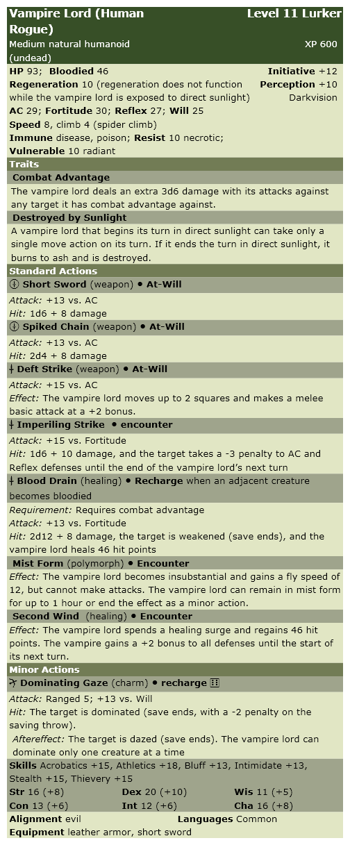 Here, by "rabid" I did mean "infected with rabies," not "rabid" as a figure of speech. The vampires had these and these stats, and the additional powers Manic Attack and Rabid Bite.