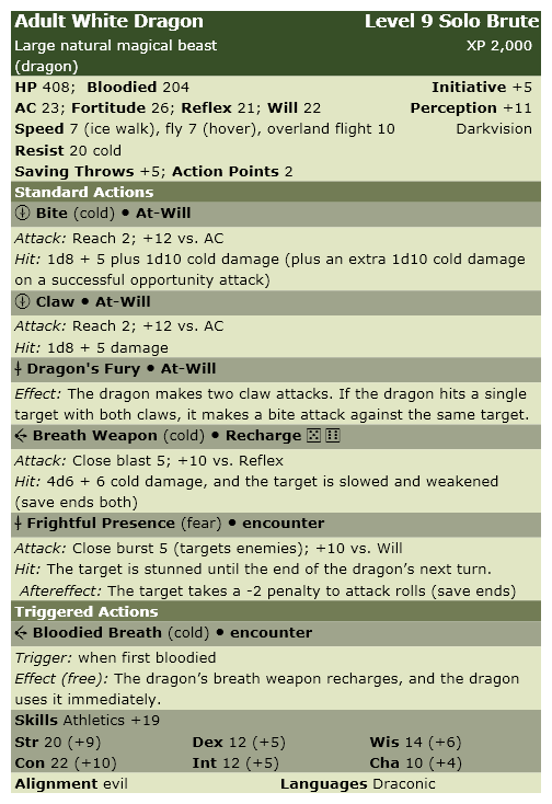 The Prodigy had the statistics of an adult white dragon. In addition: